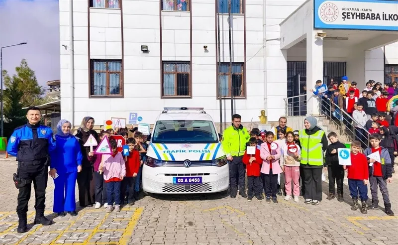 Kahta İlçe Emniyet Müdürlüğü ekipleri, Şeyhbaba İlkokulu'nda öğrencilere trafik kuralları, 112'nin doğru kullanımı ve polislik mesleği hakkında bilgilendirme yaptı.