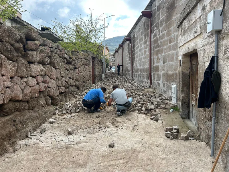 Altyapı ve doğalgaz çalışmaları sonrası bozulan Akropal Sokak ve çevresinde, doğal taş döşeme çalışmaları sürüyor. Çalışmalarla bölgenin estetik ve güvenli bir görünüme kavuşması hedefleniyor.