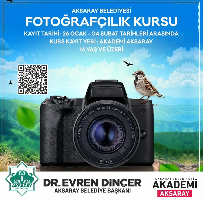 Aksaray Belediyesi, sanat ve kişisel gelişim destekleri kapsamında yeni bir eğitim programı başlatıyor. Akademi Aksaray bünyesinde düzenlenecek Fotoğrafçılık Kursu, fotoğrafa ilgi duyan vatandaşları bir araya getirecek.