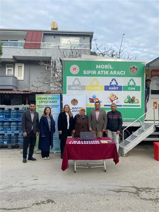 Alanya Belediyesi, zirai ilaç ambalaj atıklarının toplanmasını teşvik eden Çevre Dostu Çiftçi Kart Projesi'ni semt pazarlarında anlatarak yeni çiftçileri sisteme kazandırdı.