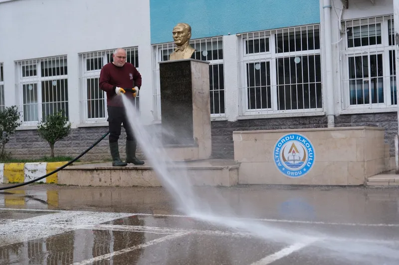Altınordu Belediyesi, ikinci yarıyıl öncesinde ilçedeki okullarda kapsamlı temizlik yaptı. Okul bahçeleri ve ortak alanlar yıkanarak dezenfekte edildi.