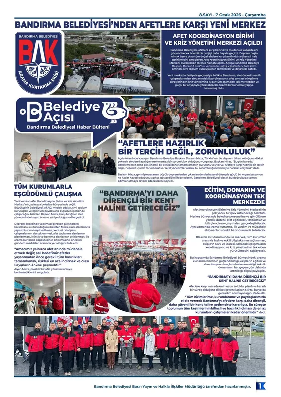 Bandırma Belediyesi’nin 1 aylık haber bülteni “Belediye Açısı” 8. sayısıyla dijital platformlarda sizlerle!