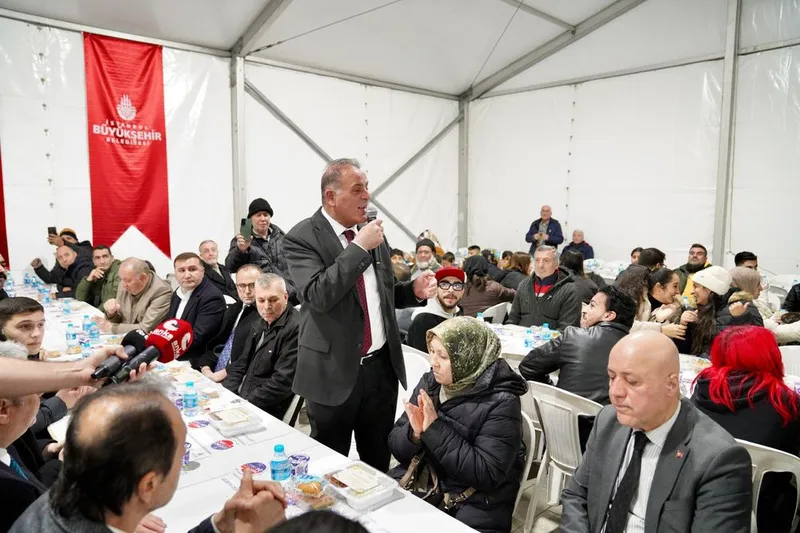 İstanbul Büyükşehir Belediyesi’nin (İBB) Ramazan ayı boyunca şehrin dört bir yanında sürdürdüğü iftar dayanışması, Bağcılar’da büyük bir buluşmaya sahne oldu. İBB Başkanvekili Nuri Aslan, iftar öncesinde sofraları tek tek dolaşarak vatandaşlarla sohbet etti, talep ve önerilerini dinledi. Komşularıyla aynı sofrayı paylaşmanın kendisi için özel bir anlam taşıdığını belirten Aslan, duygularını şu sözlerle ifade etti: