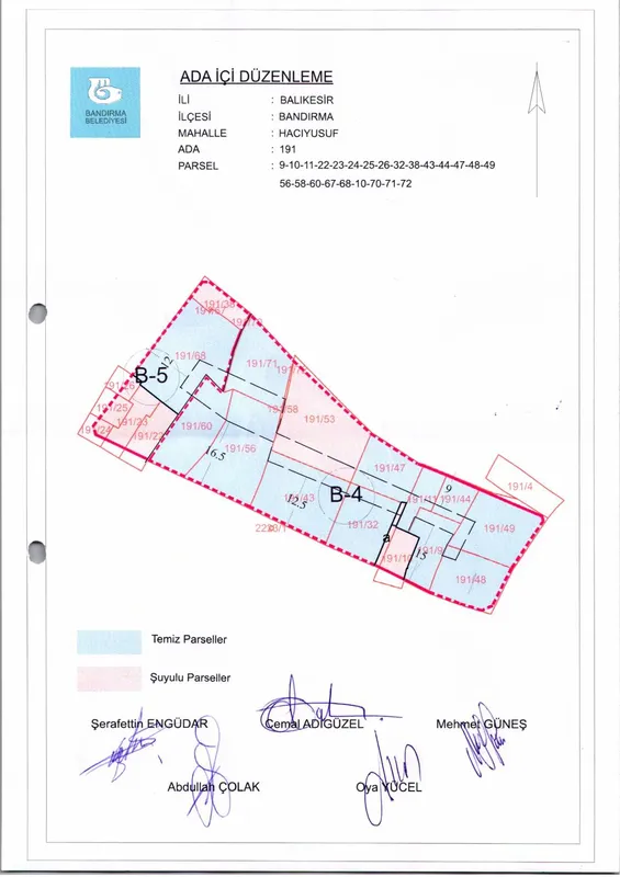 Bandırma Belediyesi Encümeni, 21 Ocak 2026 tarihli ve 63 sayılı kararı ile Hacıyusuf Mahallesi 191 ada içindeki düzenlemeyi onayladı.