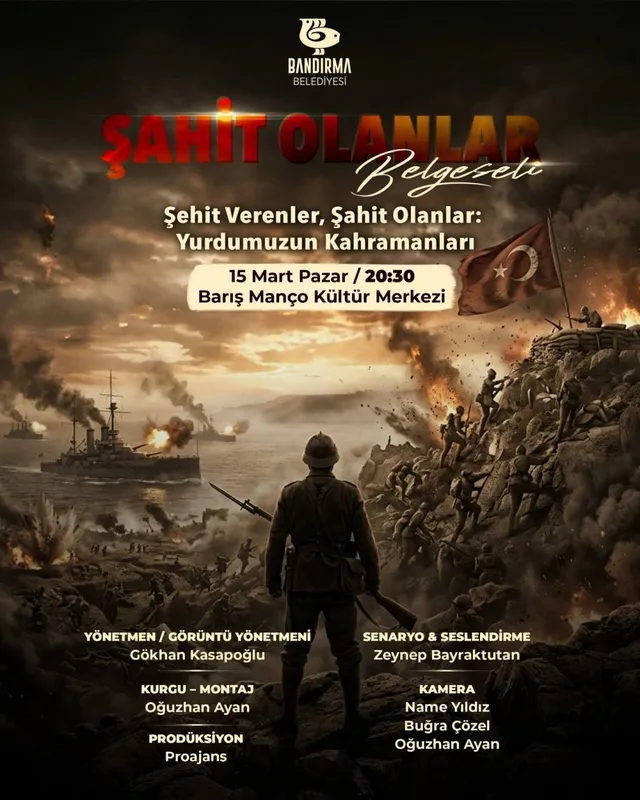 Bandırma Belediyesi'nin hazırladığı, şehit ve gazilerin hatıralarını konu alan belgesel, 15 Mart'ta ücretsiz olarak izleyiciyle buluşacak.