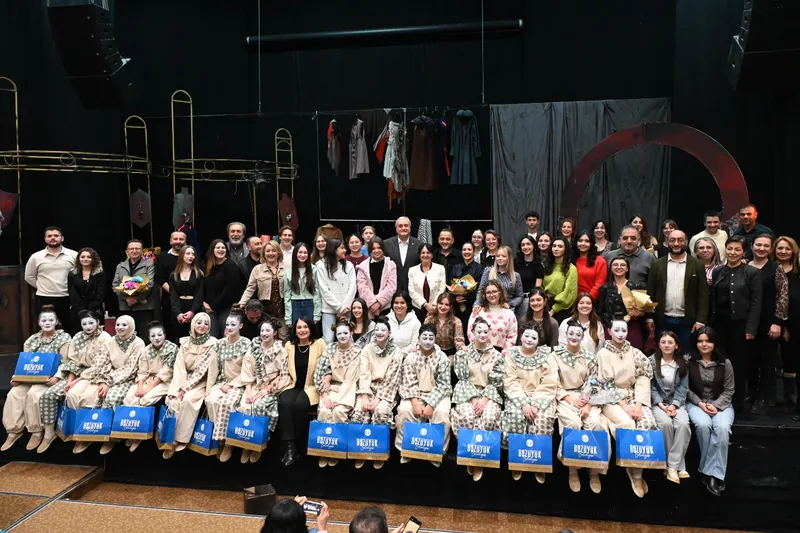 Oyunun ardından sahneye gelen Bozüyük Belediye Başkanı Mehmet Talat Bakkalcıoğlu, yaptığı konuşmada tiyatro ekibinin başlangıcına dair duygularını paylaştı. Bakkalcıoğlu, "Belediye Tiyatrosu ilk önce Kıvanç, İlknur ve Özgür'le başladığımız bir yolculuk oldu. O zaman onları belediyeye birlikte çalışmaya davet ettiğimizde, 'bir gün gelir büyük şehirlerdeki gibi şehir tiyatrosu olur mu Bozüyük'ün' diye düşünmüştük. Olmuş değil mi? Olmuş" ifadelerini kullandı. Konuşmasının ardından Başkan Bakkalcıoğlu ve eşi, oyunda emeği geçenlere çiçek ve hediye takdim etti.