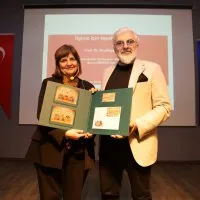 Etkinliğin soru-cevap bölümünün ardından Kent Tarihi ve Tanıtımı Dairesi Başkanı Güney Özkılınç tarafından Prof. Dr. Dostoğlu'na hediye ve çiçek takdim edildi.