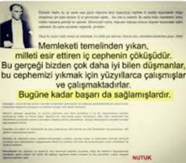 · Mustafa Kemal Atatürk de iç cephenin önemine ilişkin olarak 98 yıl önce NUTUK’ta( Sayfa 453)