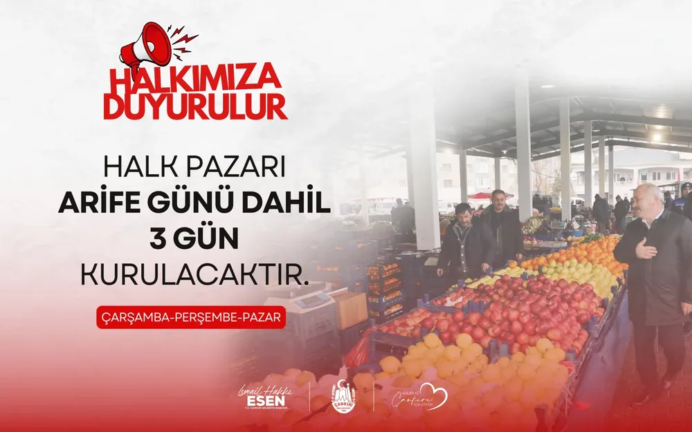 Perşembe gününe denk gelen arife gününde, Çarşamba Pazarı alanında bir kez daha pazar kurulacak. Böylece pazar esnafı ile vatandaşlar bu hafta üç gün boyunca bir araya gelme imkânı bulacak.