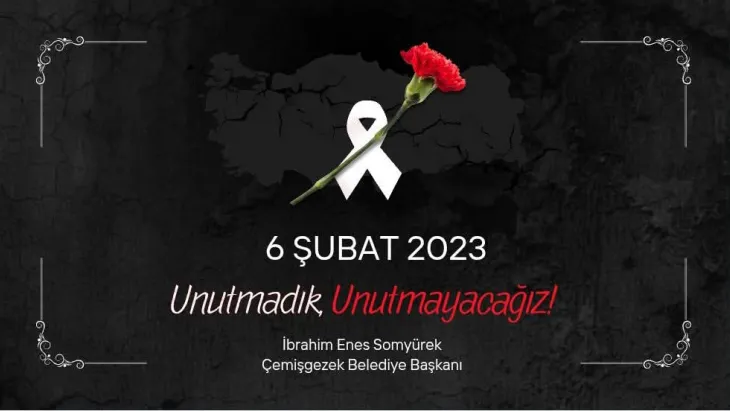 Çemişgezek Belediye Başkanı İbrahim Enes Somyürek, 6 Şubat 2023'teki depremlerin üçüncü yıl dönümünde hayatını kaybedenleri andı ve ailelere başsağlığı diledi.