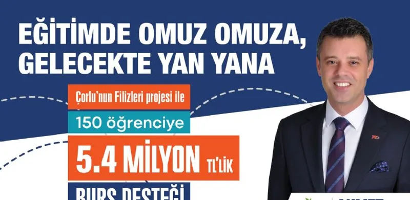 Çorlu'da ikamet eden ihtiyaç sahibi yükseköğrenim öğrencilerine destek olmak amacıyla hayata geçirilen “Çorlu’nun Filizleri” projesi kapsamında, 2025–2026 eğitim öğretim yılında 150 üniversite öğrencisi karşılıksız burs alacak.
