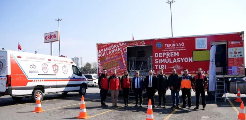 Etkinlikler kapsamında Tekirdağ Büyükşehir Belediyesi'ne ait Deprem Simülasyon Tırı vatandaşlarla buluşturuldu. Vatandaşlar, deprem anını kontrollü bir ortamda deneyimleme ve deprem sırasında nasıl hareket edilmesi gerektiğini uygulamalı olarak görme imkânı elde etti. Çorlu Belediye Başkan Vekili Ramazan Sezer ve Başkan Yardımcısı Adnan Kum da simülasyon tırını ziyaret ederek deneyimi yaşadı ve yetkililerden bilgi aldı.