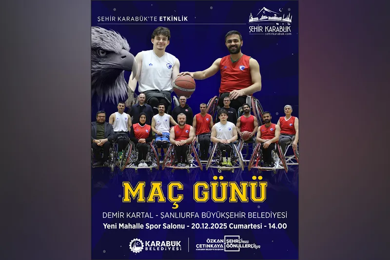 Karabük'ün temsilcisi Demir Kartal Tekerlekli Sandalye Basketbol Takımı, ligdeki mücadelesine Şanlıurfa Büyükşehir Belediyesi maçıyla devam ediyor. Karşılaşma 20 Aralık Cumartesi günü Yeni Mahalle Spor Salonu'nda başlayacak.