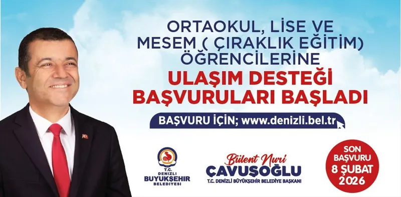 Denizli Büyükşehir Belediyesi, ulaşım desteğinin kapsamını genişleterek ortaokul öğrencilerini ve devlet korumasındaki çocukları da dahil etti. Başvurular 8 Şubat 2026'ya kadar çevrim içi yapılabilecek.