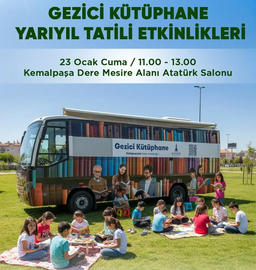 İzmir Büyükşehir Belediyesi’nin kentin dört bir yanında kitapları yurttaşlarla buluşturan Gezici Kütüphane hizmeti, yarıyıl tatilinde ilçelere konuk oluyor. 20–29 Ocak tarihleri arasında gerçekleşecek etkinliklerde çocuklar ve gençler; kitap söyleşilerinden yaratıcı okuma çalışmalarına, tiyatro gösterilerinden ayraç yapım atölyelerine kadar dopdolu bir tatil programı yaşayacak.