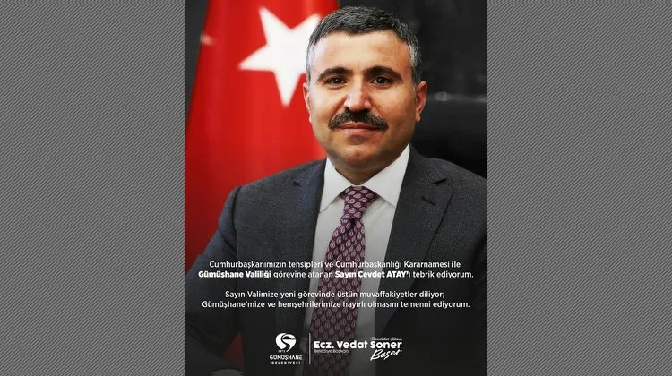 Gümüşhane Belediye Başkanı, Cumhurbaşkanlığı kararnamesiyle Gümüşhane Valiliği görevine atanan Cevdet Atay'ı telefonla arayarak tebrik etti.