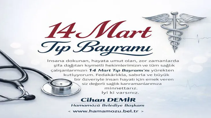 Hamamözü Belediye Başkanı Cihan Demir, 14 Mart Tıp Bayramı dolayısıyla hekimler ve tüm sağlık çalışanlarına teşekkür mesajı yayımladı.