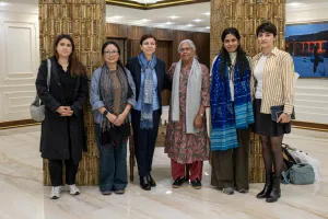 Diyarbakır’da düzenlenen Newroz kutlamalarına katılmak üzere kente gelen, Hindistan’da kadın, ekoloji ve hukuk alanlarında çalışmalar yürüten Nalini Nayak, Madhulika Tatigotla ve Wekoweu Tsuha, Büyükşehir Belediyesi Eşbaşkanı Serra Bucak’ı ziyaret etti.