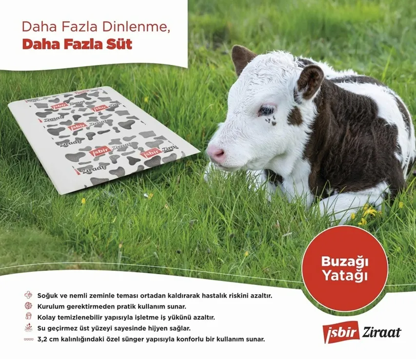 Buzağı kulübe zeminlerinde kullanılmak üzere tasarlanan özel buzağı yatağı ise kuru, temiz, yumuşak ve su geçirmez yapısıyla buzağı sağlığını en üst düzeyde destekliyor. Dayanıklı ve kaliteli malzemelerle üretilmiş olan ürün, hem buzağı kulübesi hem de buzağı bölmesinde montaj gerektirmeden kolayca kullanılabiliyor. Buzağı kulübesi ise yeni doğan buzağı, yetişkinlerle ve diğer buzağılarla aynı ortamı paylaştığında; hem ortamın kendisinden hem de diğer hayvanların hastalıklarından kolayca etkilenerek daha bağışıklık sistemi gelişmekte olduğu bu dönemde ciddi ölüm vakaları görülmesi üzerine hastalık kontrolü, kontrollü besleme vb. gibi durumlar için kullanılıyor.