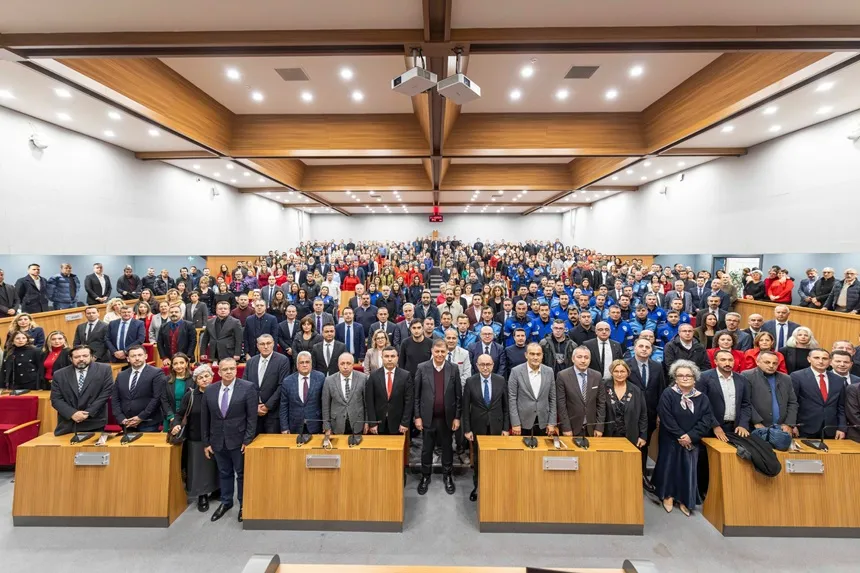 Üst yönetime de özverili çalışmaları için teşekkür eden Başkan Tugay, yönetim kültürü değişimlerinin hizmet kalitesine olan yansımasını anlattı. Tugay, “Rica ettim; 'Makam odalarınızı bırakıp açık ofiste çalışır mısınız' dedim. Hiçbiri itiraz etmedi, herkes konforundan vazgeçti ve şimdi bir arada çalışmanın keyfini yaşıyoruz. İletişim kolaylaşınca işler daha iyi yürüyor; bu durum, daha iyi işleyen bir idari yapının tüm çalışma arkadaşlarımıza olumlu yansımasını sağlıyor. 2026 yılına giriyoruz; ancak bu yıla dar bir bakış açısıyla bakmamalıyız. Dünyanın nereye gittiğini, Türkiye’nin içinde bulunduğu durumu, şehrimizin çağa ne kadar ayak uydurduğunu ve nasıl bir gelecek hayal ettiğini hepimizin düşünmesi gerekiyor. Bir şeyler yaparsanız dünya değişecek, her şey daha iyi olacak. Belki de bütün dünyaya ilham verecek işlere imza atacaksınız. Bu mümkün; benim desteğim her zaman sizinle, yeter ki buna inanın ve gayret gösterin” şeklinde konuştu.