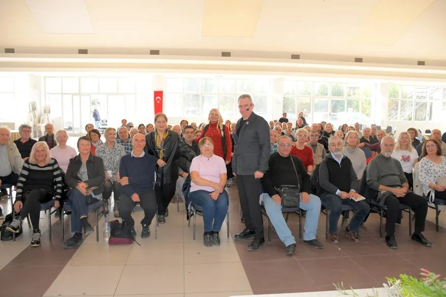 İlgenli, Seferihisar Belediyesi Etkinlik Salonunda 60 yaş ve üzerindeki yaklaşık 120 kişiye, ağız sağlığı, hijyen ve sistemik hastalıklar ilişkisi konularında ayrıntılı bilgiler verdi.