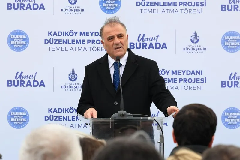 Kadıköy’ü daha düzenli, erişilebilir ve çağdaş bir kamusal alana dönüştürecek Kadıköy Meydanı Düzenleme Projesi’nin temel atma töreni, İBB Başkanvekili Nuri Aslan, Kadıköy Belediye Başkanı Mesut Kösedağı, Ataşehir Belediye Başkanı Onursal Adıgüzel ve İBB Genel Sekreteri Prof. Dr. Volkan Demir’in katılımlarıyla gerçekleştirildi. Kadıköy Rıhtım Tören Alanı’nda düzenlenen törende, Aslan ve Kösedağı birer konuşma yaptı. Aslan konuşmasına, “Sözlerime başlamadan önce; kalbi bizimle atan, aklı her daim İstanbul’da ve Türkiye’nin aydınlık geleceğinde olan bir ismin, kıymetli Büyükşehir Belediye Başkanımızın size selamlarını iletmek istiyorum. Aylardır hukuksuz bir şekilde Silivri’de tutuluyor. İstanbul’un, 5 yıl içinde 3 kez seçilmiş Belediye Başkanı, aynı zamanda da bizim cumhurbaşkanı adayımız. O, İstanbul’u ve sizi çok seviyor. Ben biliyorum ki İstanbullular olarak siz de onu seviyorsunuz,” sözleriyle başladı.