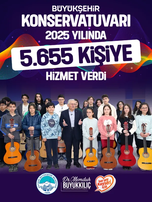 Kayseri Büyükşehir Belediyesi Konservatuvarı, 2025 yılında müzikten tiyatroya, resimden korolara kadar birçok alanda kurs imkanı sağladı. Kurum, yıl içerisinde 3 bin 413 yetişkin (16 yaş üzeri) ve 2 bin 242 çocuğa (9-15 yaş) hizmet vererek toplamda 5 bin 655 kişiye ulaştı.