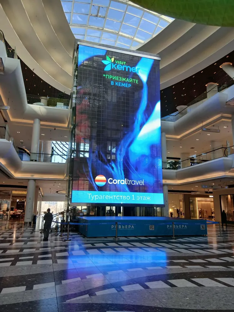 Kemer'in tanıtım videoları, Moskova'nın işlek caddeleri ve büyük alışveriş merkezlerinde bulunan dev ekranlarda yayınlanmaya devam ediyor. Geçtiğimiz yıl başlayan reklam kampanyası, bu yıl da sürüyor.