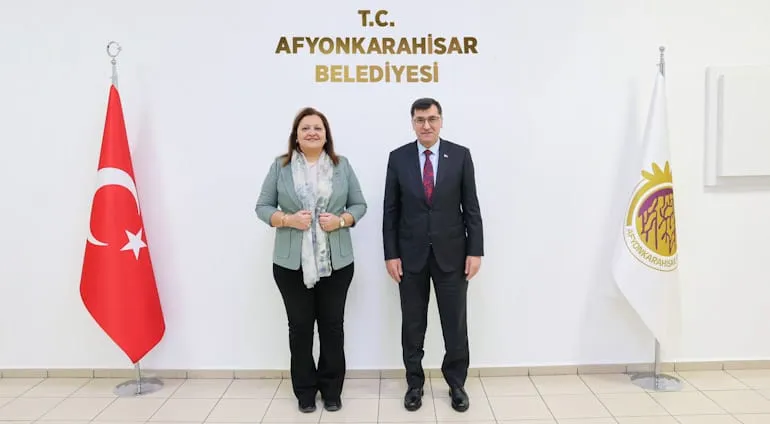 Kütahya Belediye Başkanı Eyüp Kahveci, Afyonkarahisar Belediye Başkanı Burcu Köksal'ı makamında ziyaret etti.