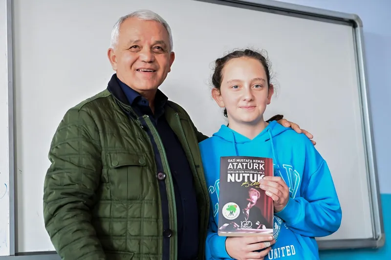 Etkinliğin ardından sınıfları tek tek gezen Başkan Şahin, öğrencilerle sohbet ederek derslerinde başarılar diledi. Ulu Önder Gazi Mustafa Kemal Atatürk'ün 'Nutuk' eserini öğrencilere hediye eden Şahin, çocuklara çok çalışarak ve öğretmenlerini dinleyerek ülkelerine yararlı bir vatandaş olarak yetişmelerinin önemini anlattı.