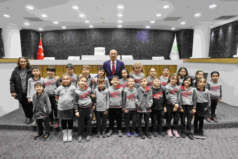 Meram Dr. Teoman Bilge İlkokulu ve Gündoğdu Koleji öğrencileri, yerel yönetimler dersi kapsamında Meram Belediyesi'ni ziyaret etti. Belediye Başkanı Mustafa Kavuş ile bir araya gelen öğrenciler, belediyenin çalışmaları hakkında bi