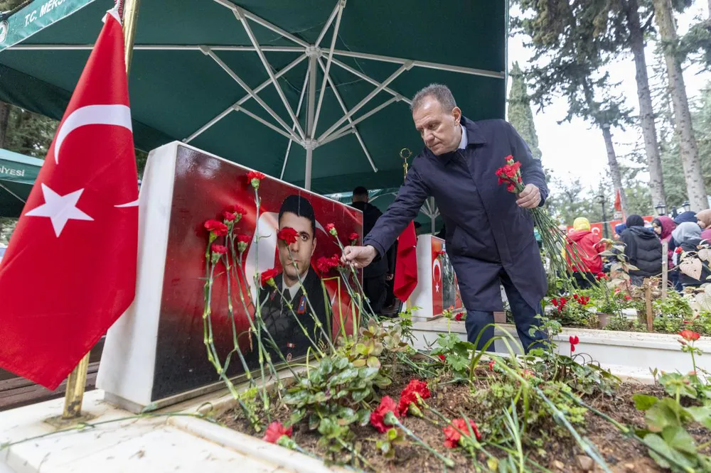 Düzenlenen törene; Mersin Valisi Atilla Toros, Akdeniz Bölge ve Garnizon Komutanı Tuğamiral Soner Kazankaya, TBB Başkan Vekili ve Mersin Büyükşehir Belediye Başkanı Vahap Seçer, kent protokolü, şehit yakınları ve gaziler katıldı. Programda Kur'an-ı Kerim tilavetinin ardından, Mersin İl Müftüsü Mustafa Topal tarafından şehitler için dua okundu. Protokol üyeleri şehit mezarlarına karanfil bırakarak, şehit aileleri ile bir araya geldi.