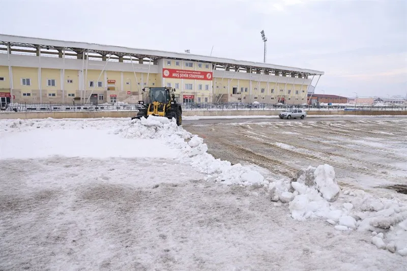 Muş Spor'un Menemen FK ile oynayacağı maç öncesi, stadyum çevresindeki karlar belediye ekipleri tarafından temizlendi.
