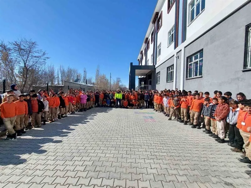 Muş İl Jandarma Komutanlığı, Malazgirt ilçesindeki iki okulda 311 öğrenciye trafik bilinci ve güvenlik eğitimi verdi, çizgi film izletti ve köpek gösterisi düzenledi.