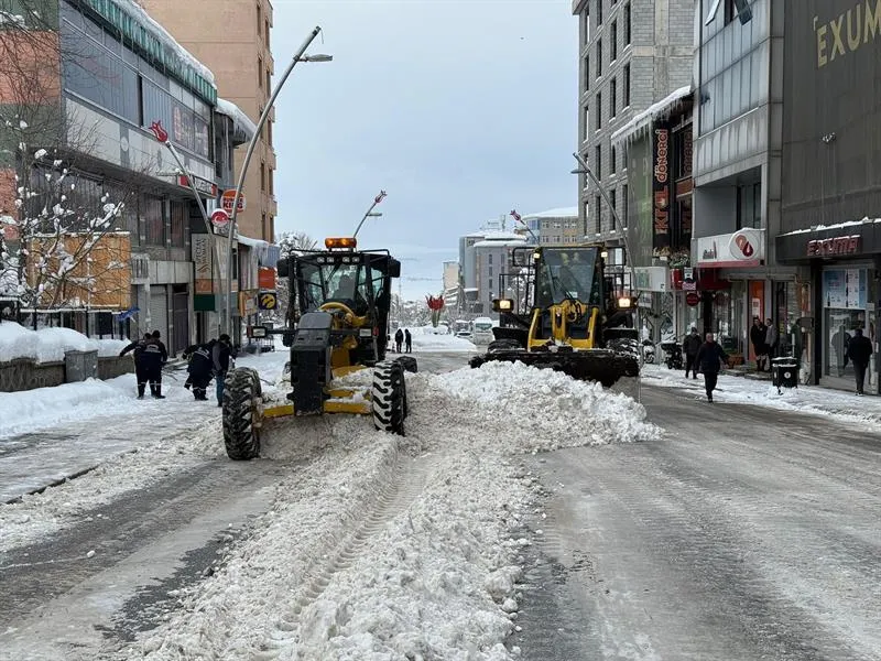 Muş Belediyesi ekipleri, etkili olan kar yağışına karşı ana arterler ve şehrin dört bir yanında kar küreme çalışmalarını sürdürüyor.