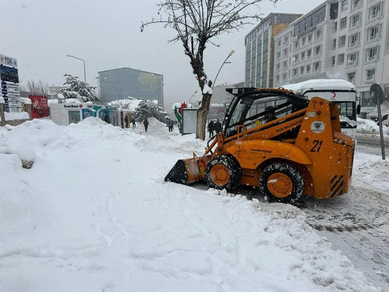 Kar yağışının yeniden etkisini gösterdiği Muş'ta, ulaşım ve yaya güvenliğini sağlamak amacıyla belediye ekipleri ana arterler, ara sokaklar ve kaldırımlarda çalışmalarını sürdürüyor.