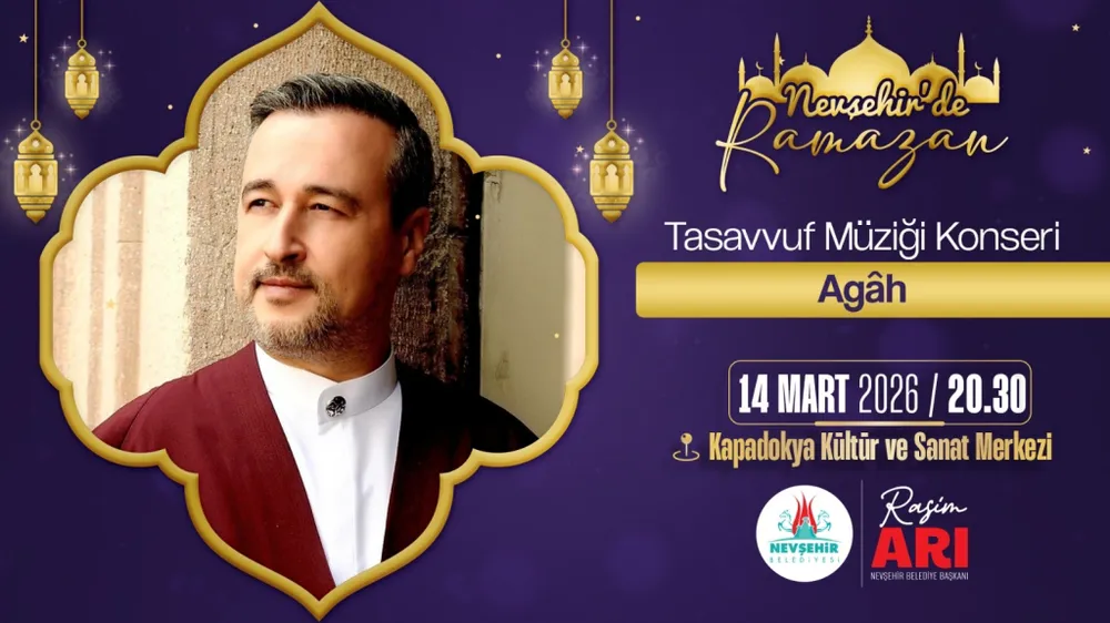 Nevşehir Belediyesi, Ramazan ayı etkinlikleri kapsamında Kapadokya Kültür ve Sanat Merkezi'nde Agâh'ın tasavvuf müziği dinletisine ev sahipliği yapacak.
