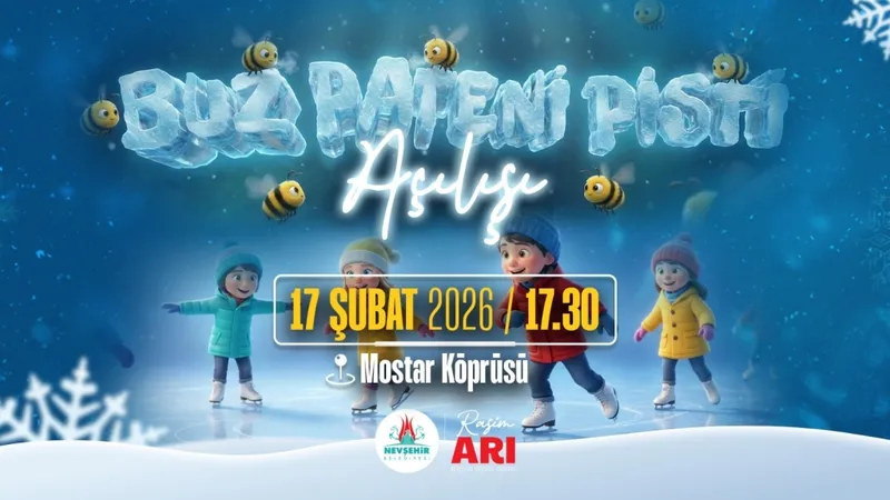 Nevşehir Belediyesi tarafından Mostar Köprüsü yanına kurulan mobil buz pateni pisti, 17 Şubat 2026 Salı günü saat 17.30'da düzenlenecek törenle hizmete giriyor. 45 gün boyunca ücretsiz hizmet verecek pist, çocuklar ve gençler için