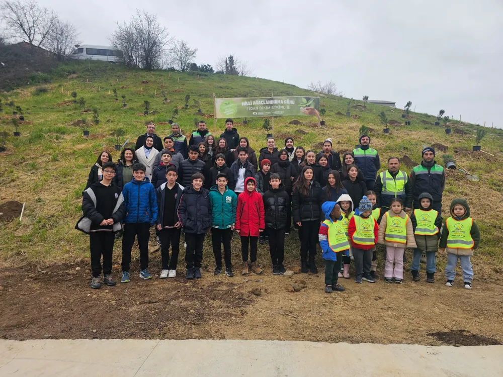 Pendik Belediyesi'nin Milli Ağaçlandırma etkinliğinde, anaokulu ve ortaokul öğrencileri Ramazanoğlu Mahallesi'nde fidan dikti.