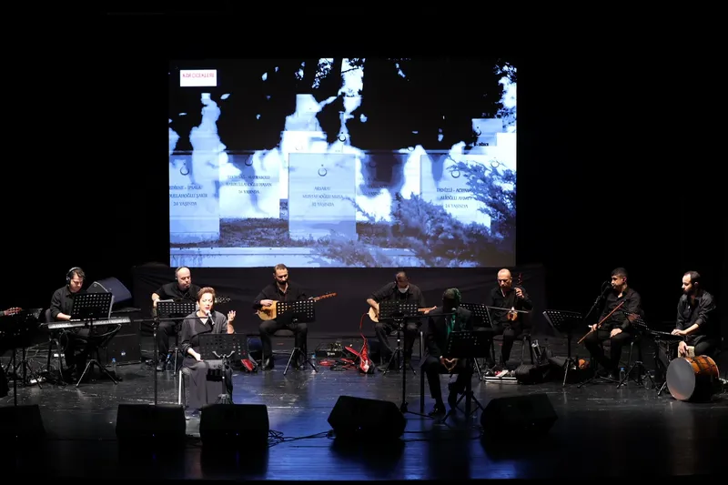 Programda, anlatıcı Başak İkiz, Sarıkamış’ta yaşanan destanı ve tarihe kazınan acıyı güçlü anlatımıyla sahneye taşıdı. Usta sanatçılar Aysun Gültekin ve Tuncay Kemertaş tarafından seslendirilen ağıtlar dinleyenleri duygulandırdı.