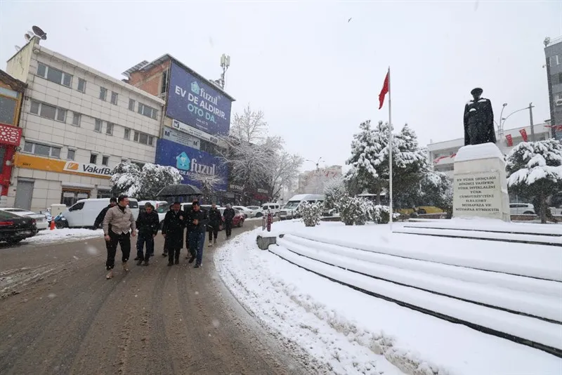 Vali ve Belediye Başkan Vekili Dr. Kemal Kızılkaya, yoğun kar yağışı nedeniyle belediye ekiplerini sahada ziyaret etti ve vatandaşlara trafik uyarılarında bulundu.