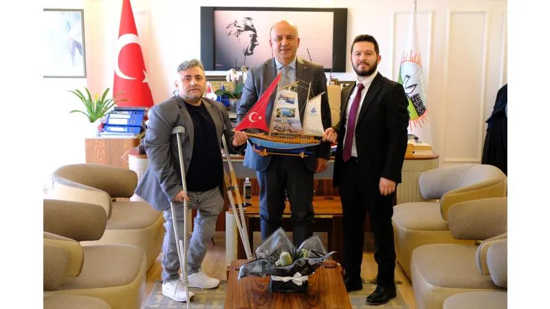 Ziyarette, Yönetim Kurulu Başkanı Aydın Çengel, Belediye Başkanı Metin Gürbüz'e gemi maketi hediye etti.