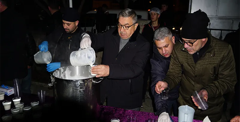 Miraç Kandili'nde Şuhut Ulu Cami'de bir araya gelen vatandaşlara, belediye tarafından 150 litre süt ve bin kişilik lokma ikram edildi.