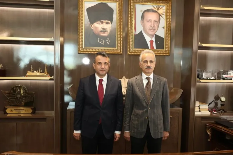 Bir dizi program için Samsun'a gelen Ulaştırma ve Altyapı Bakanı Abdulkadir Uraloğlu, Samsun Büyükşehir Belediye Başkanı Halit Doğan'ı belediye binasında ziyaret etti. Başkan Halit Doğan, Büyükşehir Belediyesi tarafından hayata geçirilen, devam eden ve planlanan yatırımlar hakkında kapsamlı bilgiler aktardı. Görüşmede, ulaşım projelerinin yanı sıra kentsel dönüşüm, altyapı çalışmaları ve Samsun'un gelişimine katkı sağlayacak yatırımlar üzerine istişarelerde bulunuldu.
