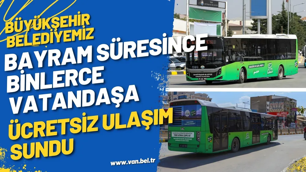 Van Büyükşehir Belediyesi, Ramazan Bayramı süresince kent merkezi ve 13 ilçede ücretsiz ulaşım hizmeti sundu. Belediye otobüsleri, üç günlük bayram tatili boyunca yaklaşık 100 bin yolcu taşıdı.