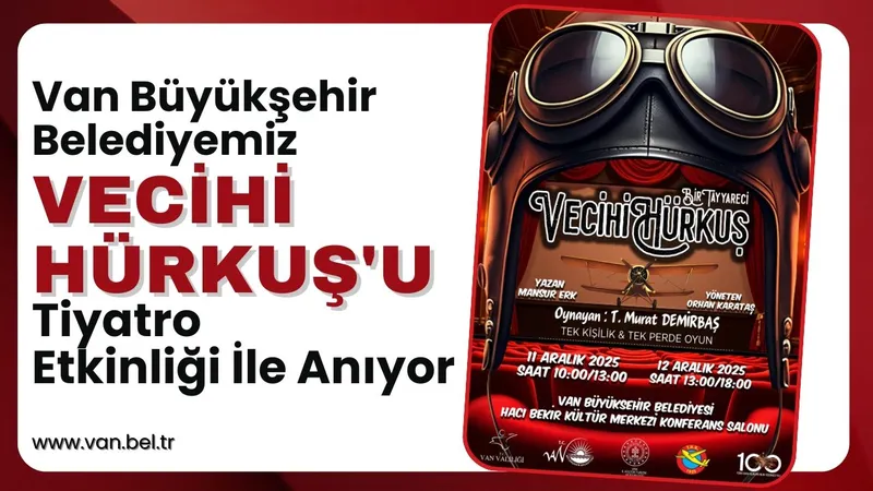 Van Büyükşehir Belediyesi, Türk havacılık tarihinin öncü isimlerinden Vecihi Hürkuş’un hayatını konu alan “Bir Tayyareci Vecihi Hürkuş” adlı tiyatro oyununu sahneliyor.