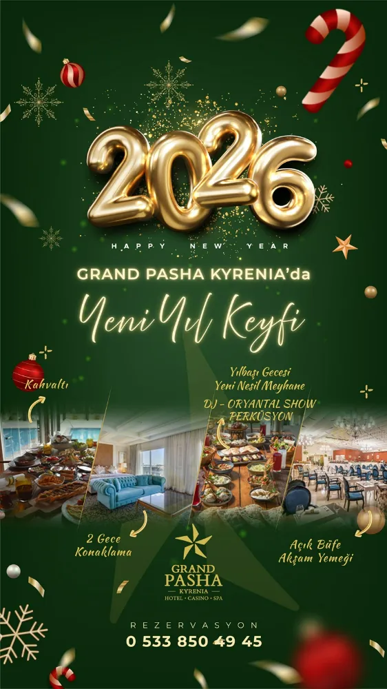 KKTC’nin gözde konaklama ve eğlence noktalarından Grand Pasha Girne Hotel, yılbaşına damgasını vuracak özel bir programla misafirlerini karşılıyor. Bu yıl 2025’i uğurlarken, 2026’ya enerjisi yüksek, eğlencesi bol ve kahkahası hiç eksik olmayan bir giriş yapmak isteyenler için hazırlanmış yılbaşı paketi adeta kaçırılmayacak bir fırsat sunuyor.